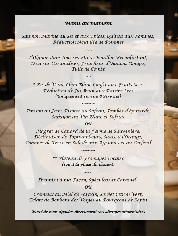 ⚠️ Le samedi, le menu est de minimum 4 services. Merci de votre compréhension.